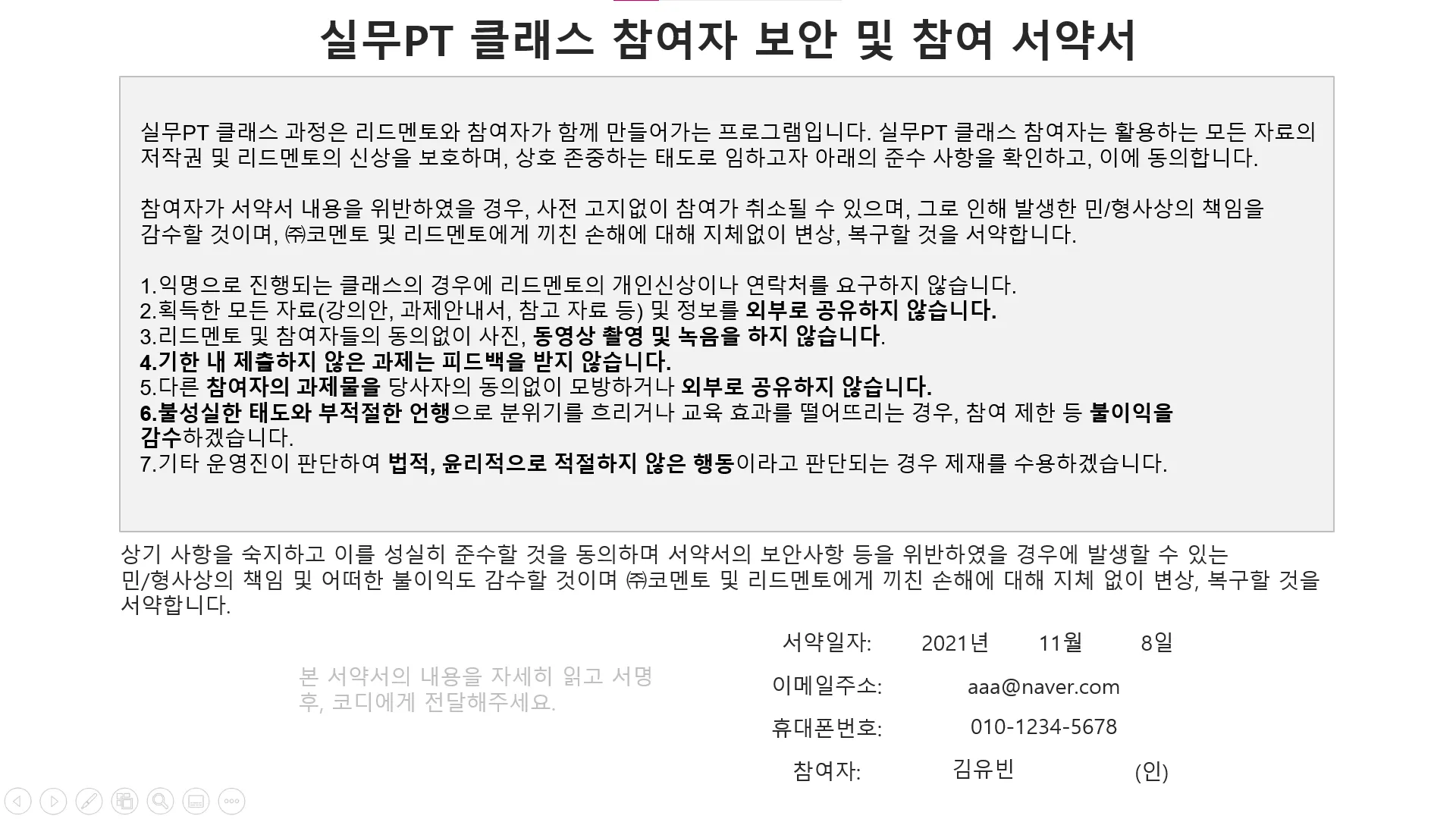[ 3 ] 모든 멘티님들은 보안유지서약서를 작성 후 캠프에 참여합니다